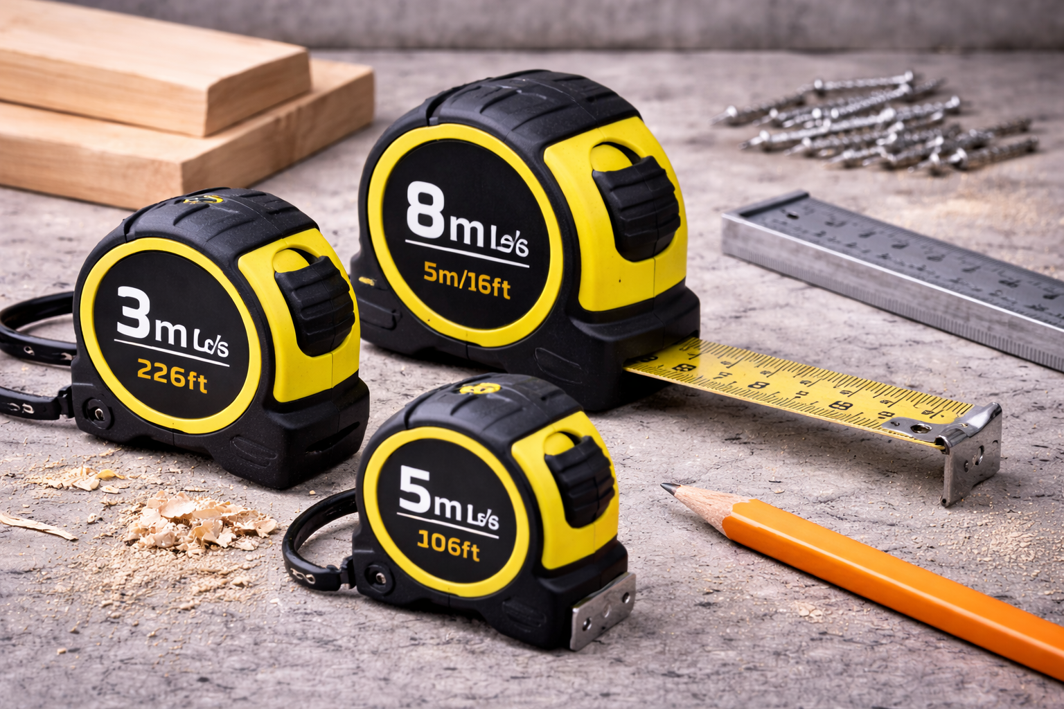 Looking for reliable and precise measuring tools? Our premium measuring tapes are available in a variety of lengths, including 3m, 5m, 8m, 10m, 30m, and 50m, to suit different requirements. Whether you’re tackling home improvement projects, working in construction, or pursuing professional assignments, we’ve got you covered.